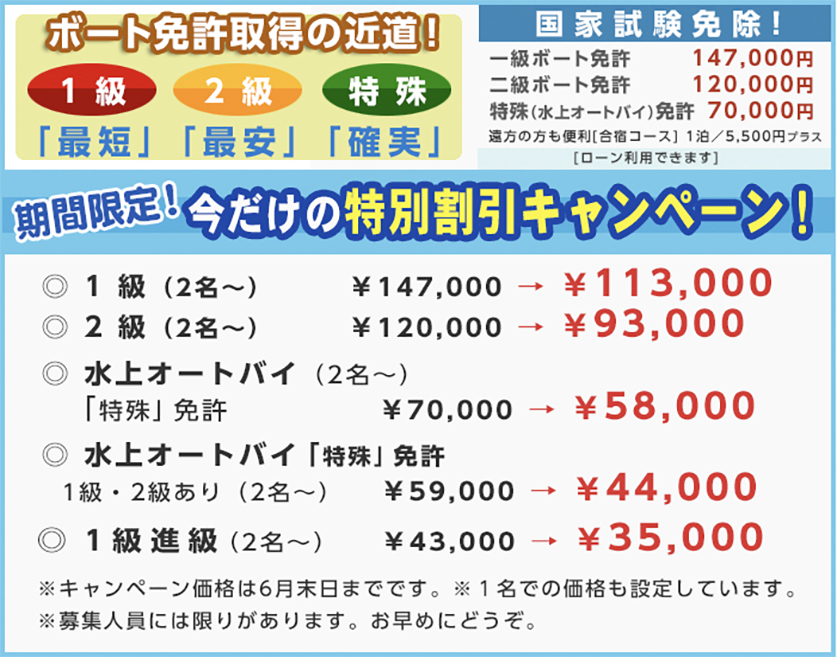 ◎ ボート免許取得応援キャンペーン 第2弾!